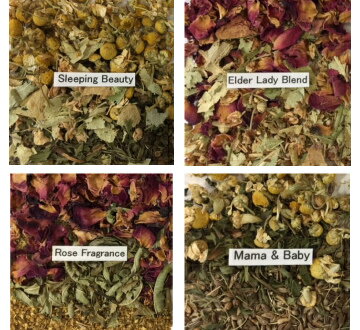 スウィートレモン,ママ&ベビー,スレンダーピンク,スリーピングビューティー,ローズフレグランス,エルダーレディーブレンド,ビューティーCブレンド 7種類のオリジナルブレンドが1袋(カップ2杯分)ずつ、はいってます。