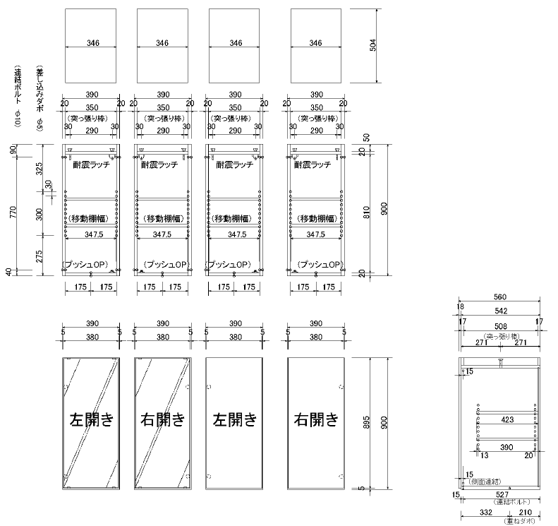 本体と上置きの結合設置、商品の横連結はお客様での作業となります。