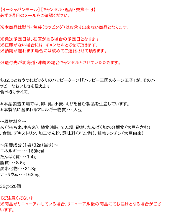 [関連キーワード:お菓子 おやつ スナック 米菓]亀田製菓 ハッピーターン 32g はコチラ >>【イージャパンショッピングモール】内のみのお買い物は、送料一律でどれだけ買っても同梱する事が出来ます。